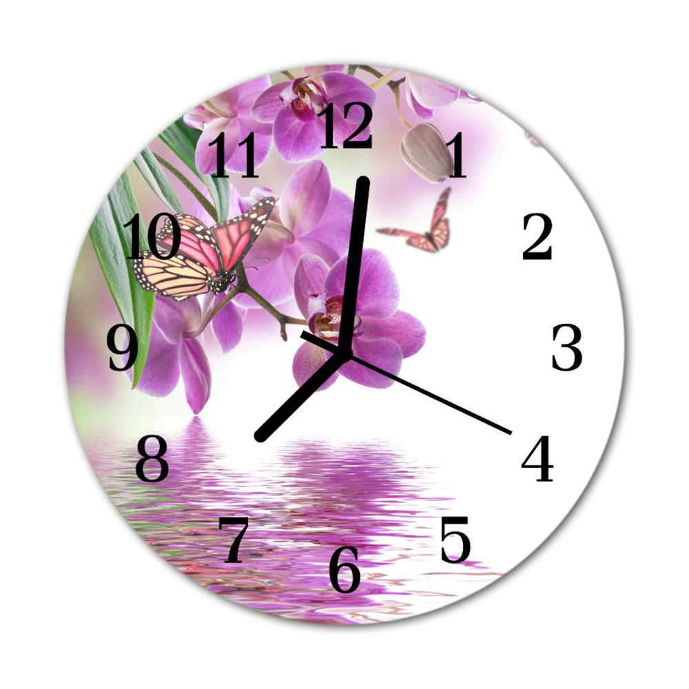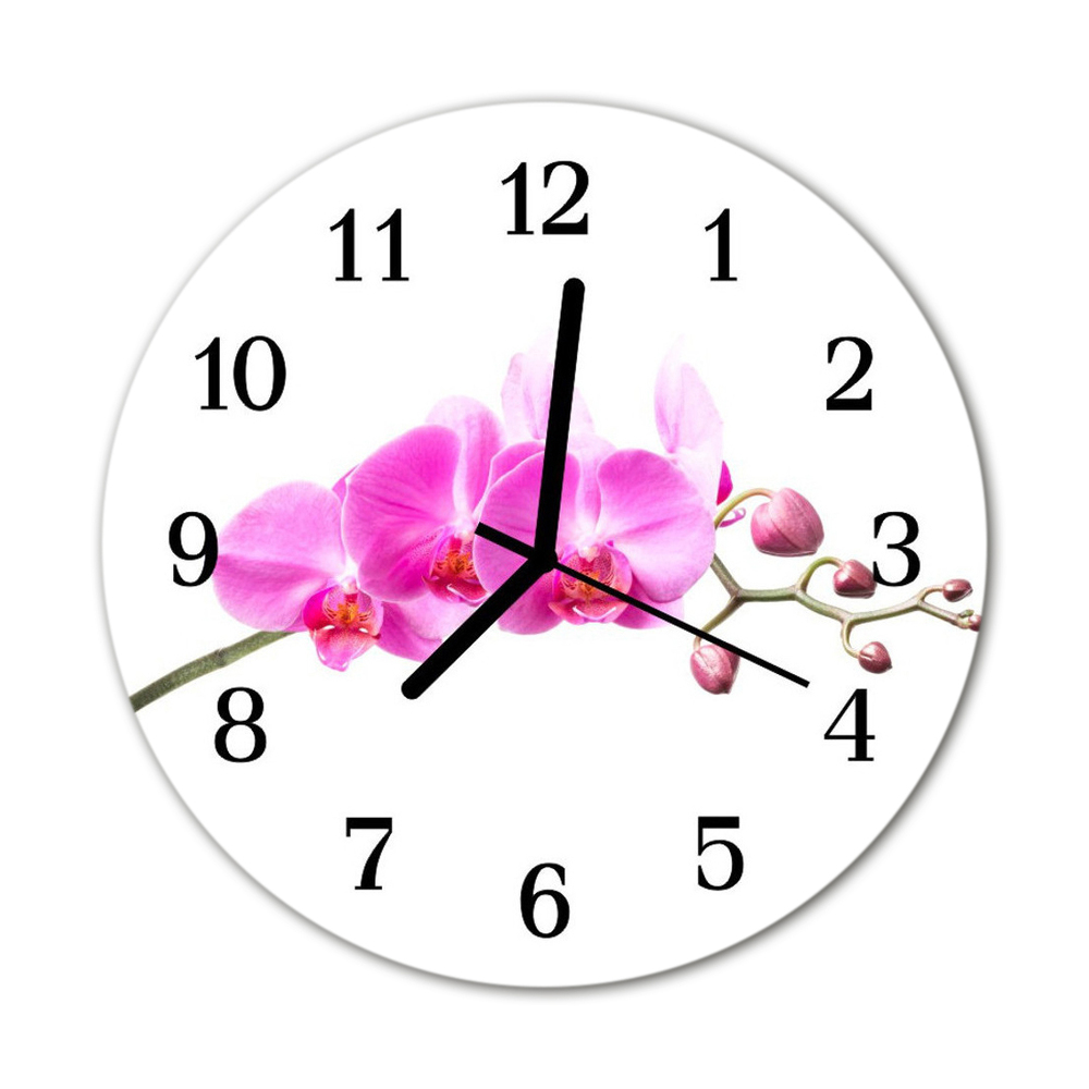 Ceas de perete din sticla rotund Orhideea flori roz fi 30 cm Negru