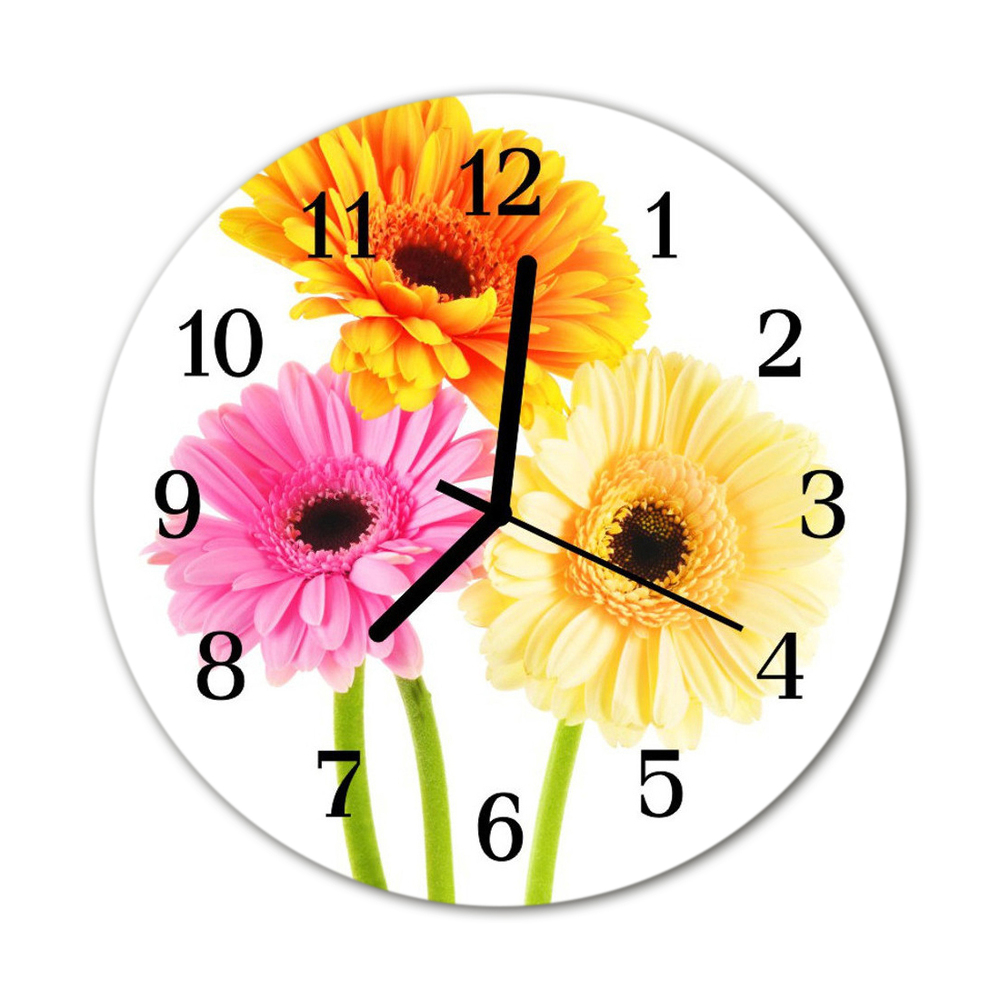 Ceas de perete din sticla rotund Flori Flori multicolor fi 30 cm Negru
