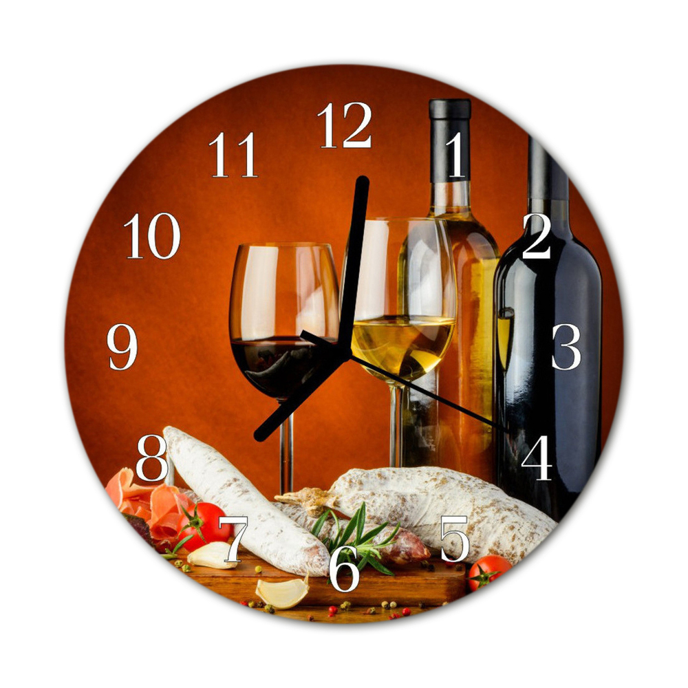Ceas de perete din sticla rotund Vin Alimente și băuturi Red fi 30 cm
