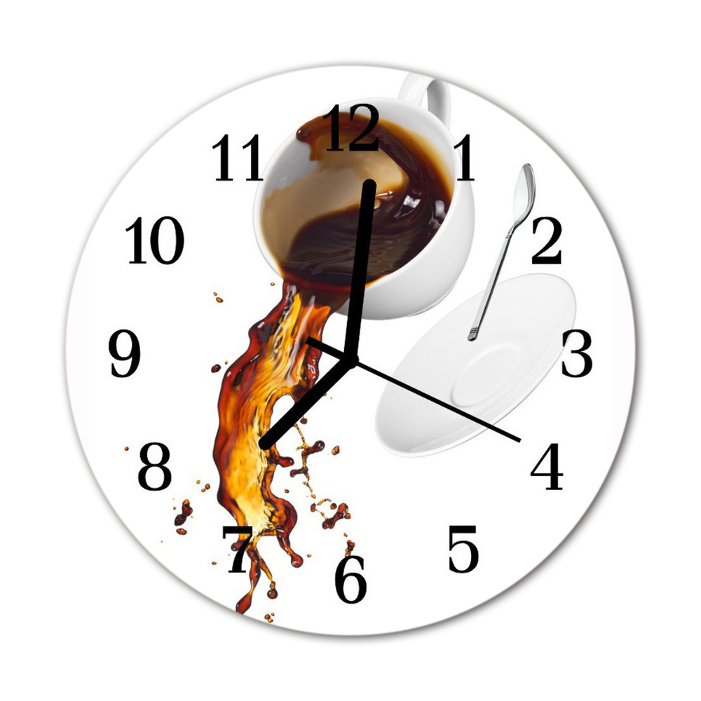 Ceas de perete din sticla rotund Cafea Alimente și băuturi alb fi 30 cm Negru