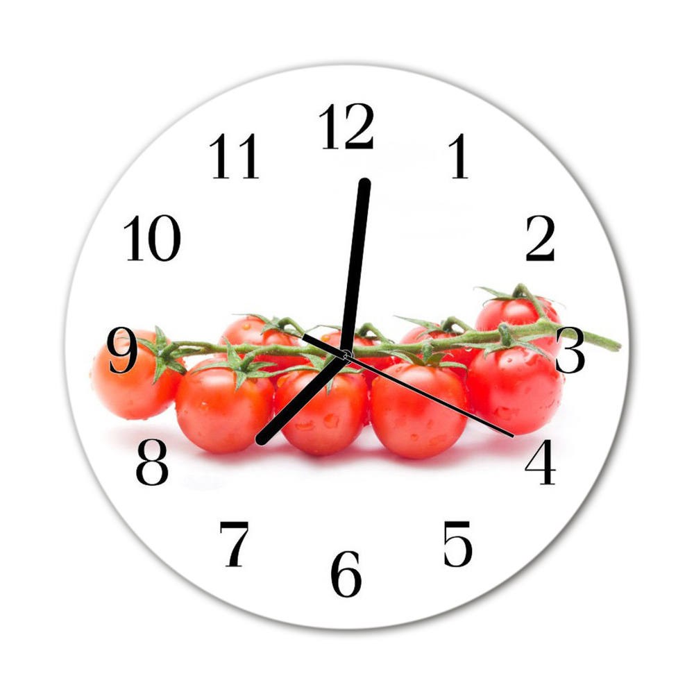 Ceas de perete din sticla rotund Tomate Alimente și băuturi alb fi 30 cm Negru