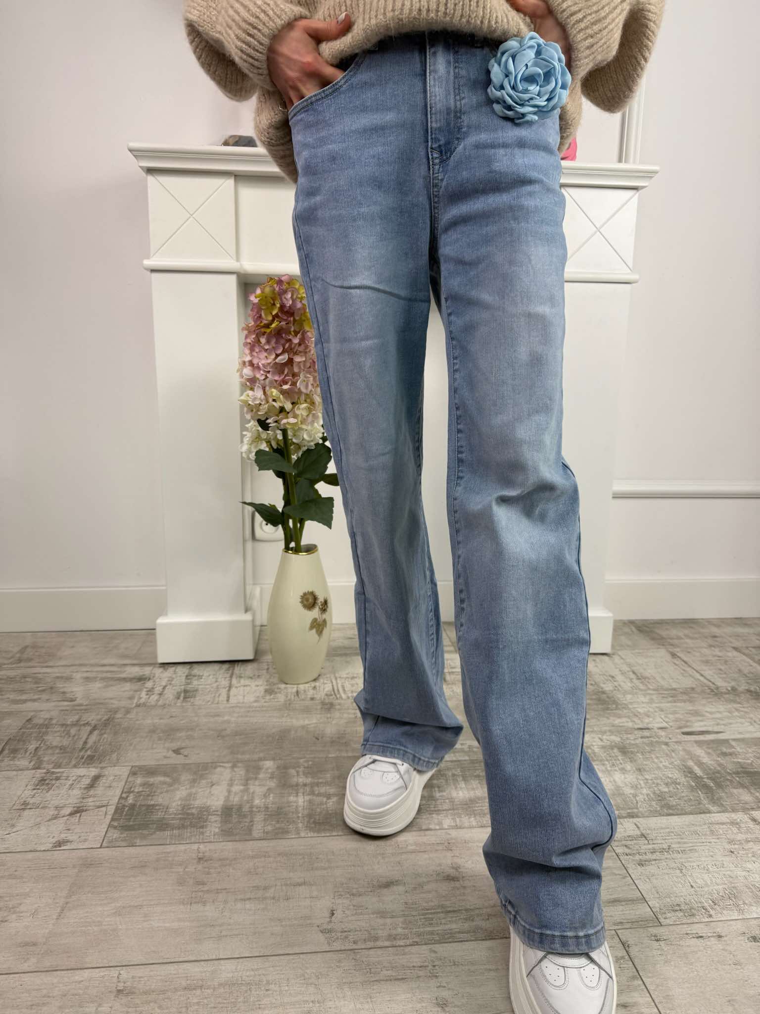ROSE SPODNIE JEANSY Z RÓŻĄ NIEBIESKIE