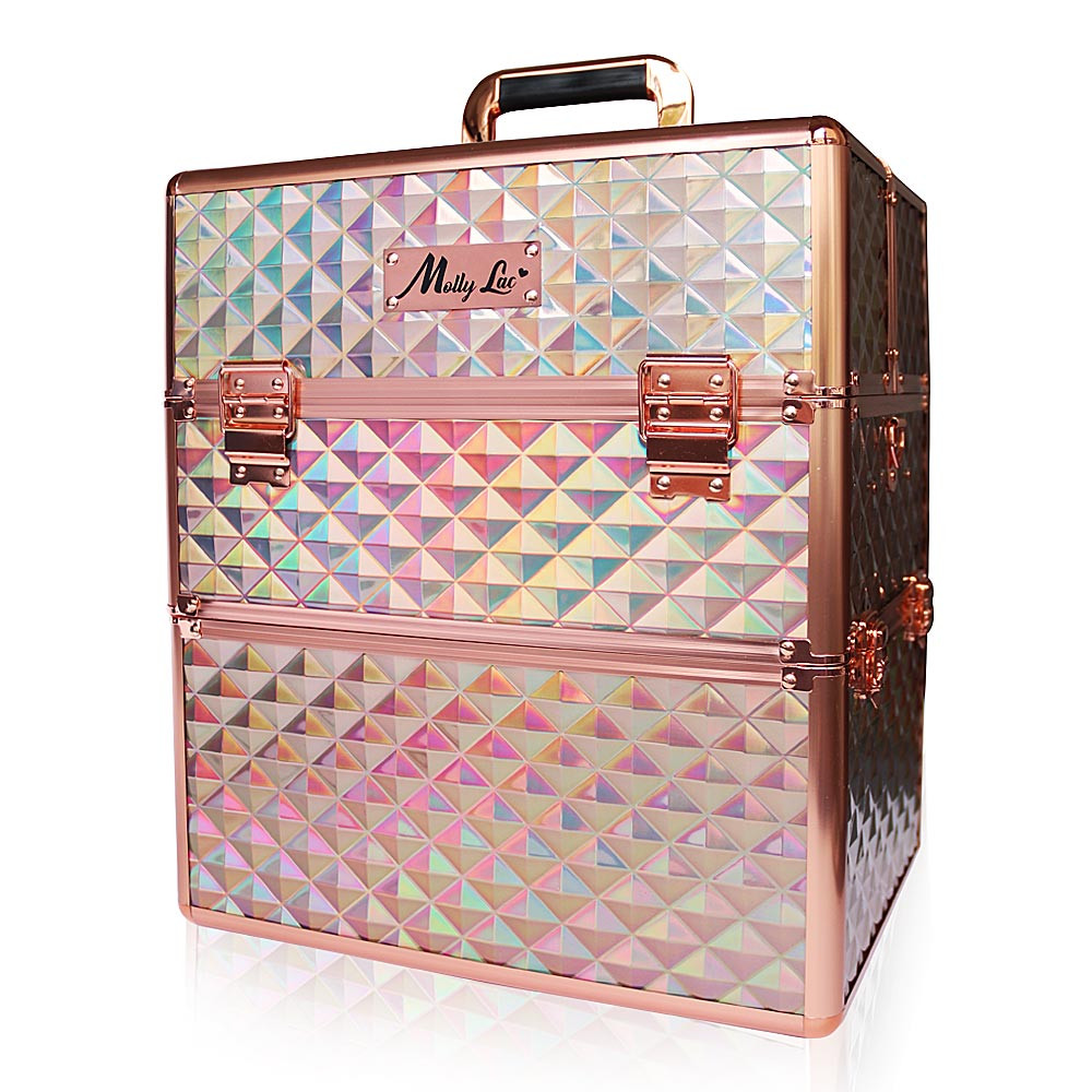 Kuferek kosmetyczny xxl na lampę i frezarkę dwuczęściowy z kratką k106-6h okucia rose golden