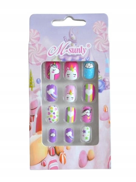 Sztuczne paznokcie dla dzieci - serca, chmurki, jednorożce 12szt