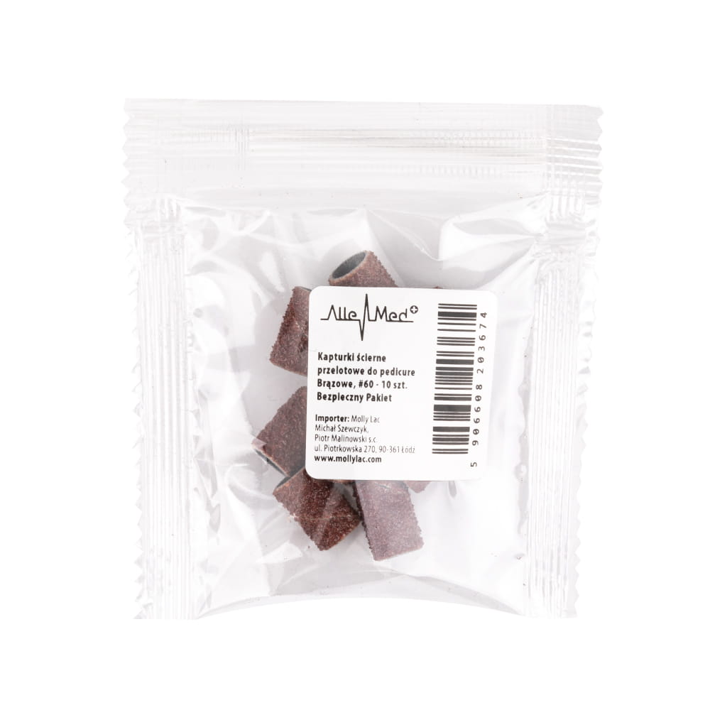 Kapturki ścierne przelotowe do pedicure gradacja 60 10 szt allemed brązowe brown