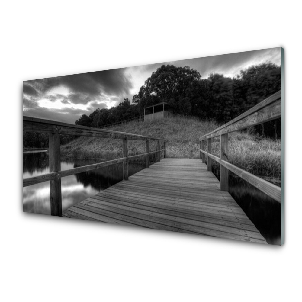 Obraz Akrylowy Molo Czarno-Białe Jezioro 100x50 cm 2 zawieszki