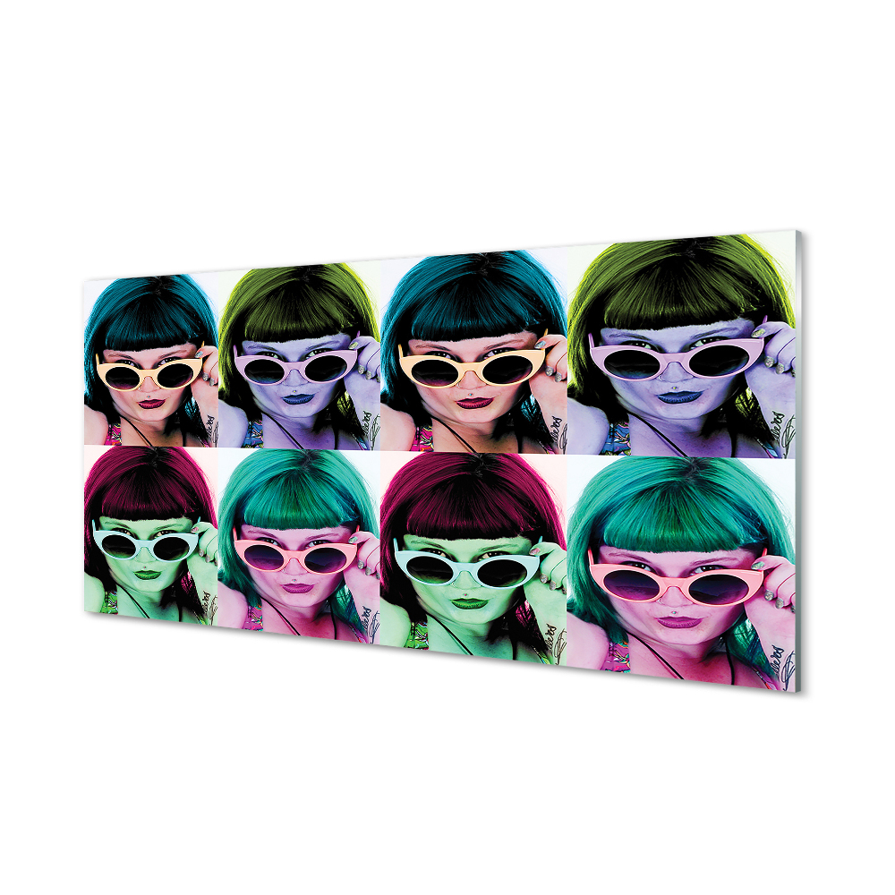 Obraz akrylowy Kobieta kolorowe włosy okulary 100x50 cm 2 zawieszki