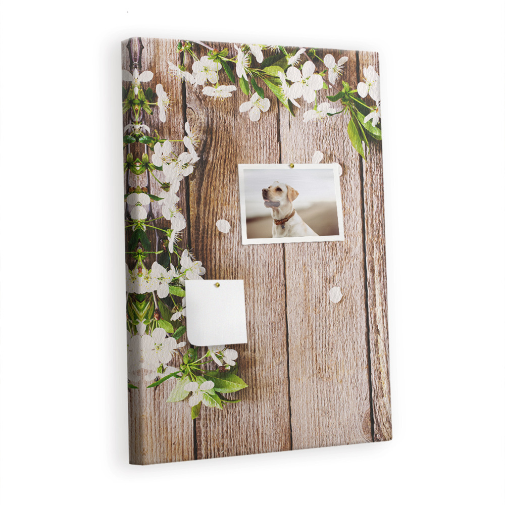 Tablica korkowa Stokrotki na deskach 40x60 cm Pinezki kolorowe