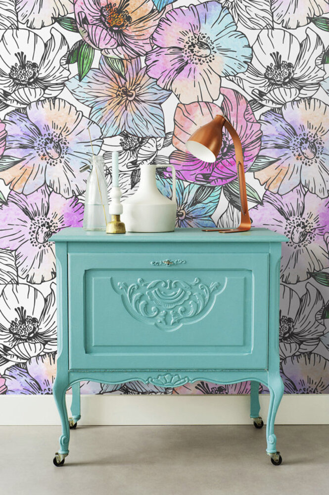 Foto tapete Handgemalte Blumen Vlies Tapete 250 x 250 cm