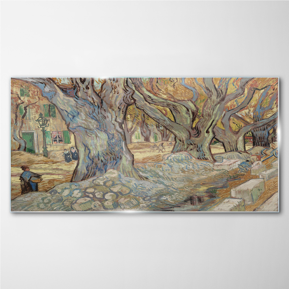 Foto auf glas Baumgesäumte Straße in der Frühlingssonne 100x50 cm