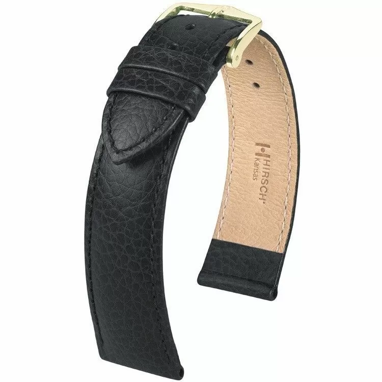 HIRSCH Czarny pasek skórzany 16 mm HIRSCH Kansas 01502050-2-16 (L)
