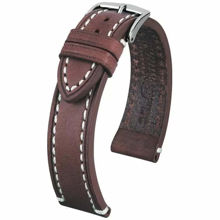 HIRSCH Brązowy pasek skórzany 24 mm HIRSCH Rivetta 01202010-2-24