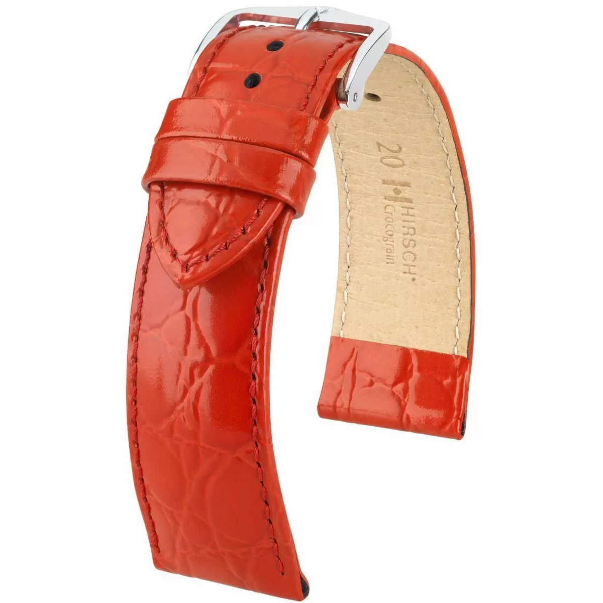 HIRSCH Czerwony pasek skórzany 20 mm HIRSCH Crocograin 12302820-2-20 (M)