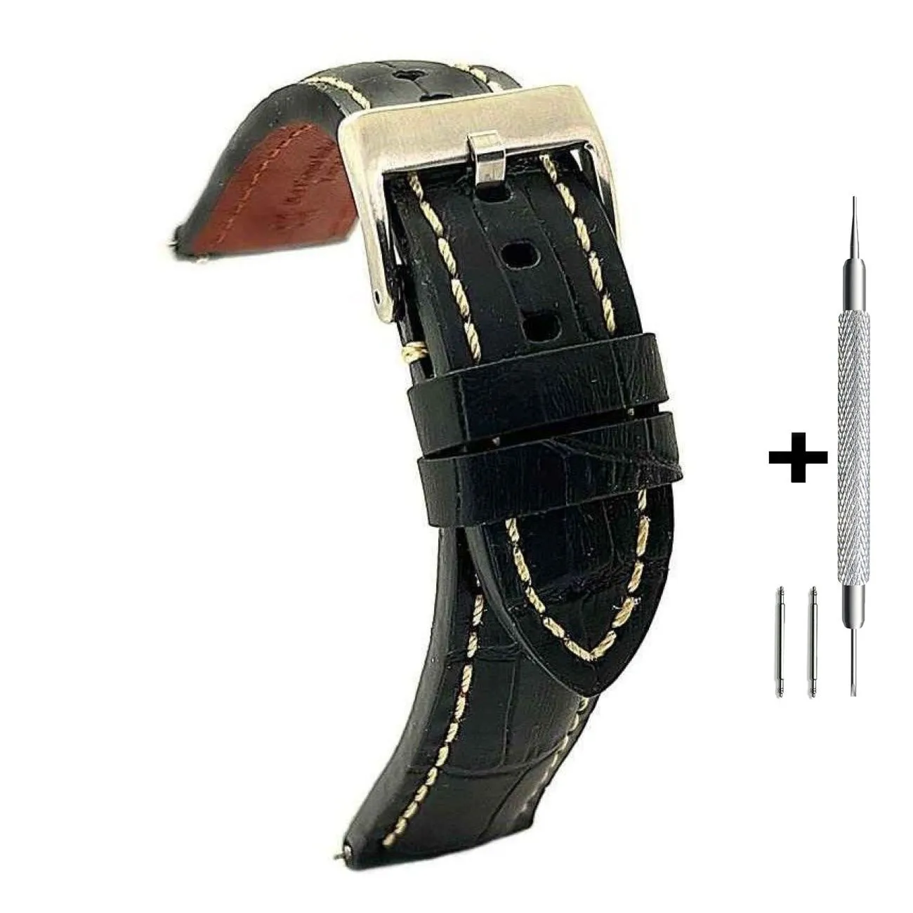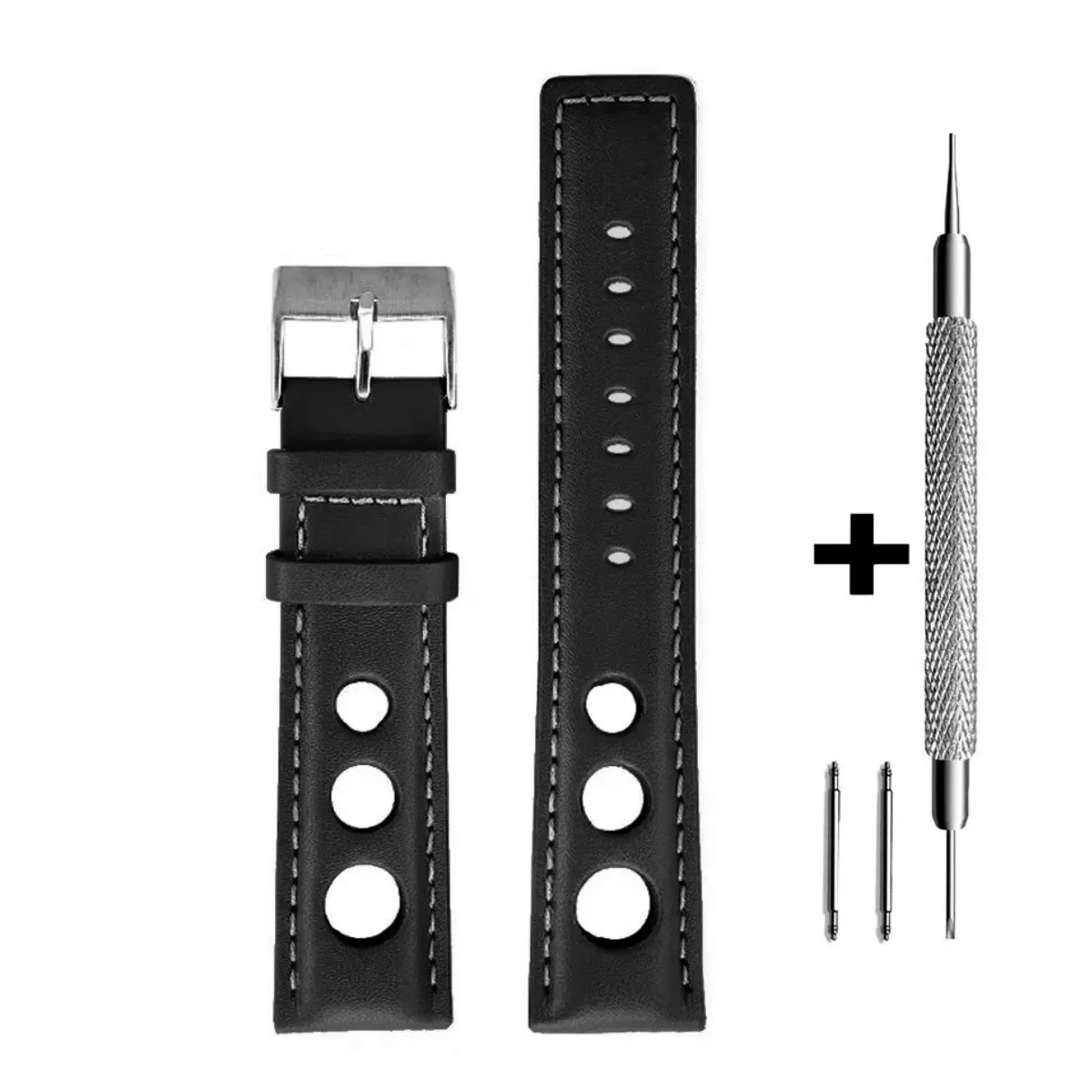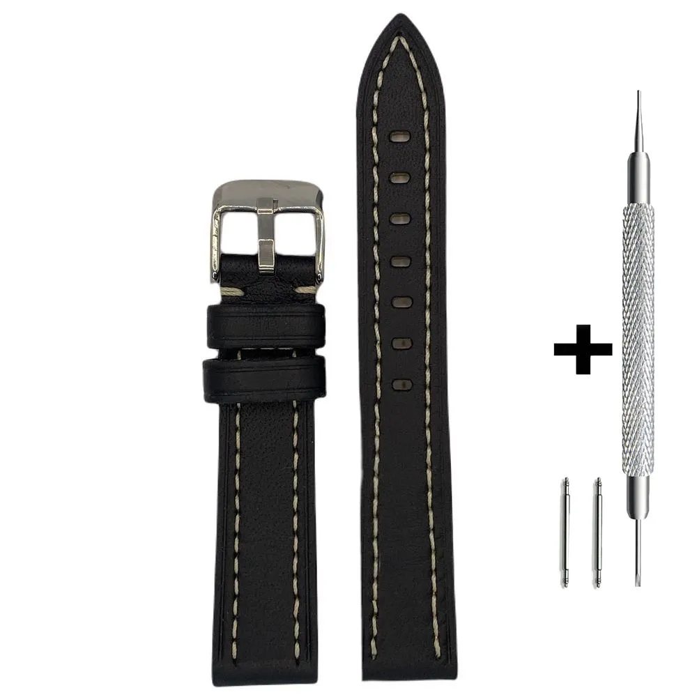 CHERMOND Czarny pasek 18 mm skórzany CHERMOND A130 + GRATIS dwa teleskopy i narzędzie