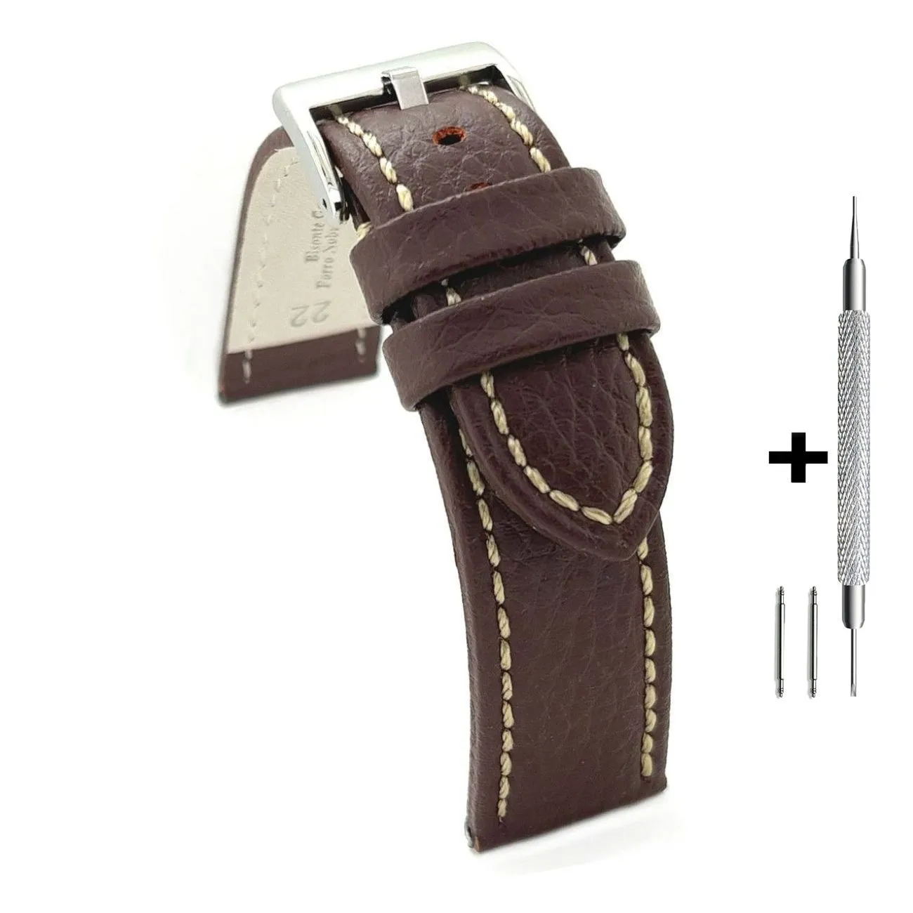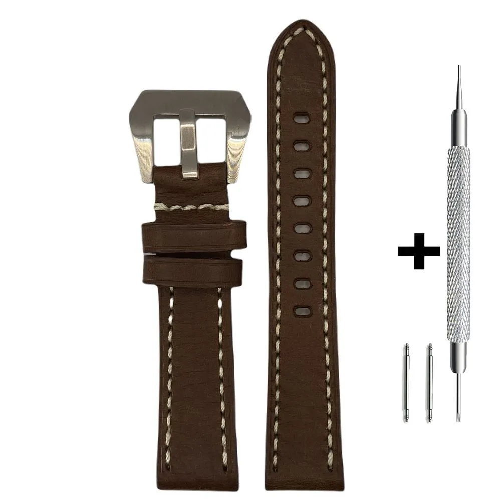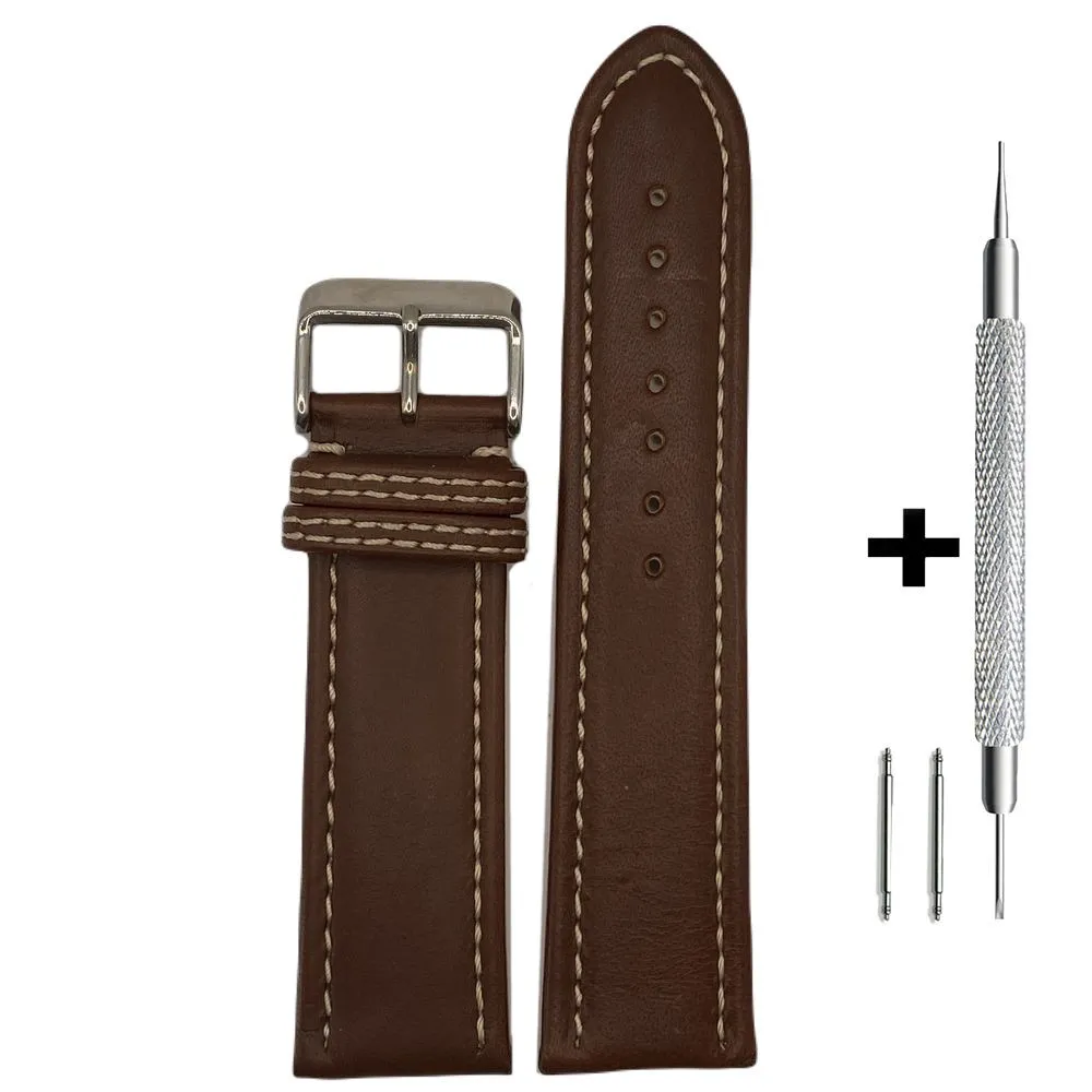 CHERMOND Brązowy pasek 24 mm skórzany XL CHERMOND A116L + GRATIS dwa teleskopy i narzędzie