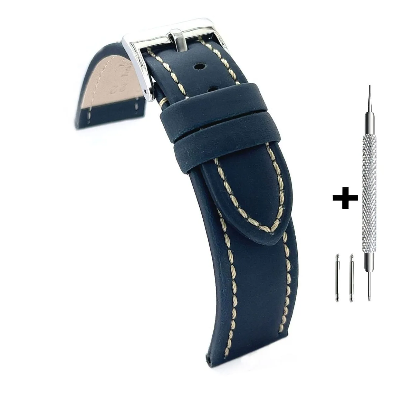 DILOY Granatowy pasek przedłużany 24 mm skórzany XL DILOY 377EA.24.05 + GRATIS dwa teleskopy i narzędzie