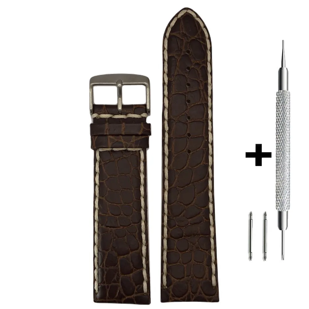 CHERMOND Brązowy pasek 24 mm skórzany CHERMOND A103 + GRATIS dwa teleskopy i narzędzie