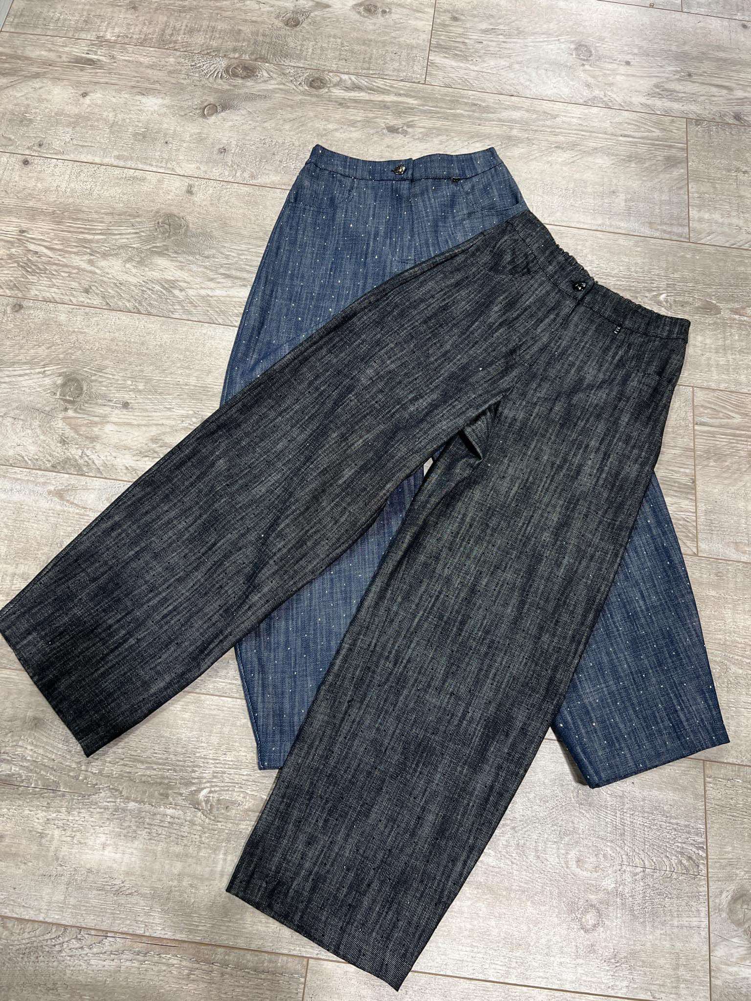 BY O LA LA! SPODNIE JEANSY MELANŻOWE GRAFIT