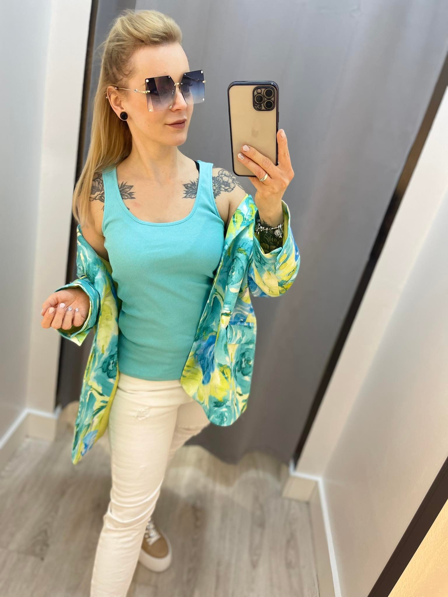 BY O LA LA...! BLUZKA TOP LOGO NIEBIESKA