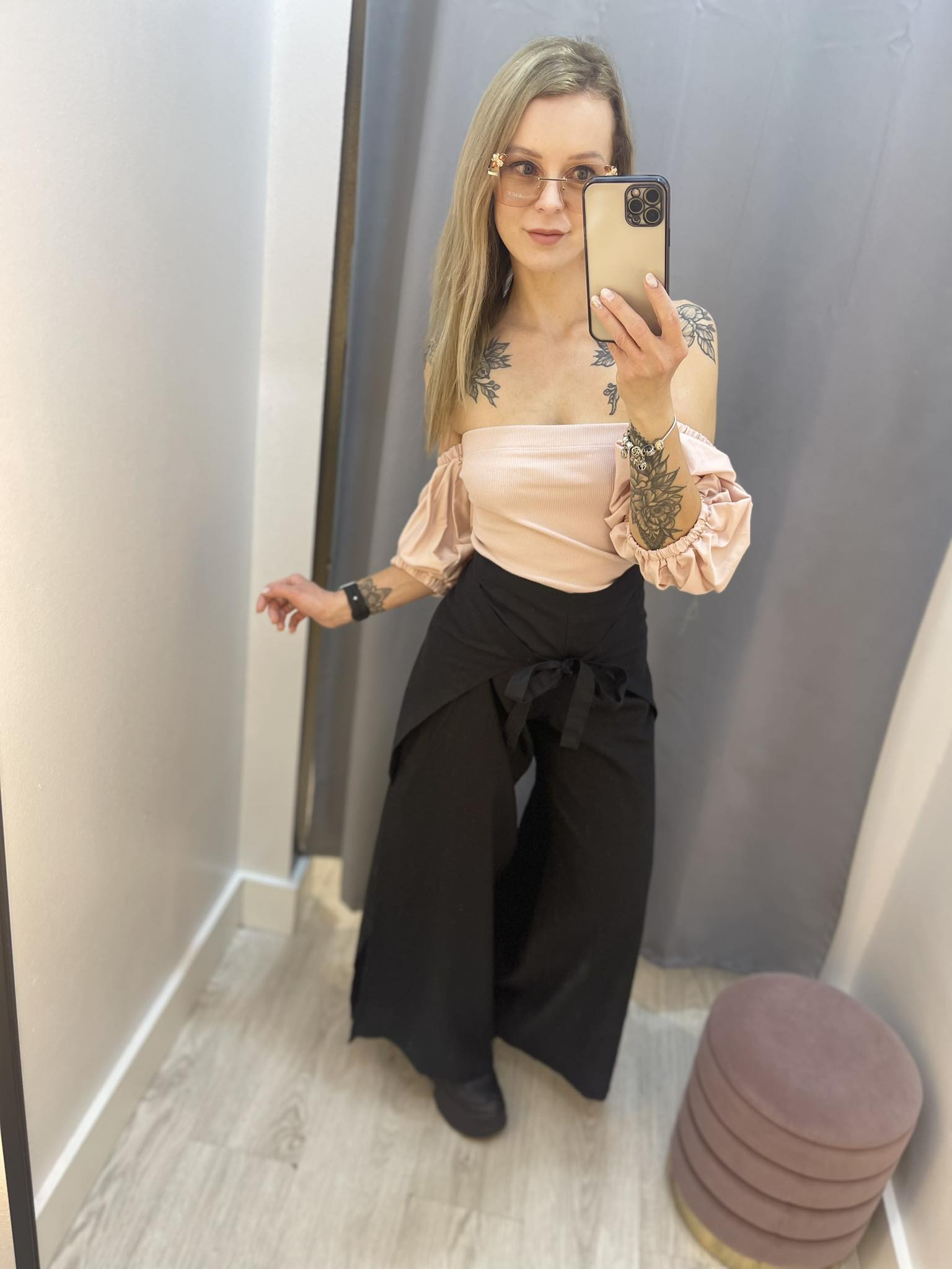 BY O LA LA...! BLUZKA BASIC WYCIĘTY DEKOLT BEŻ