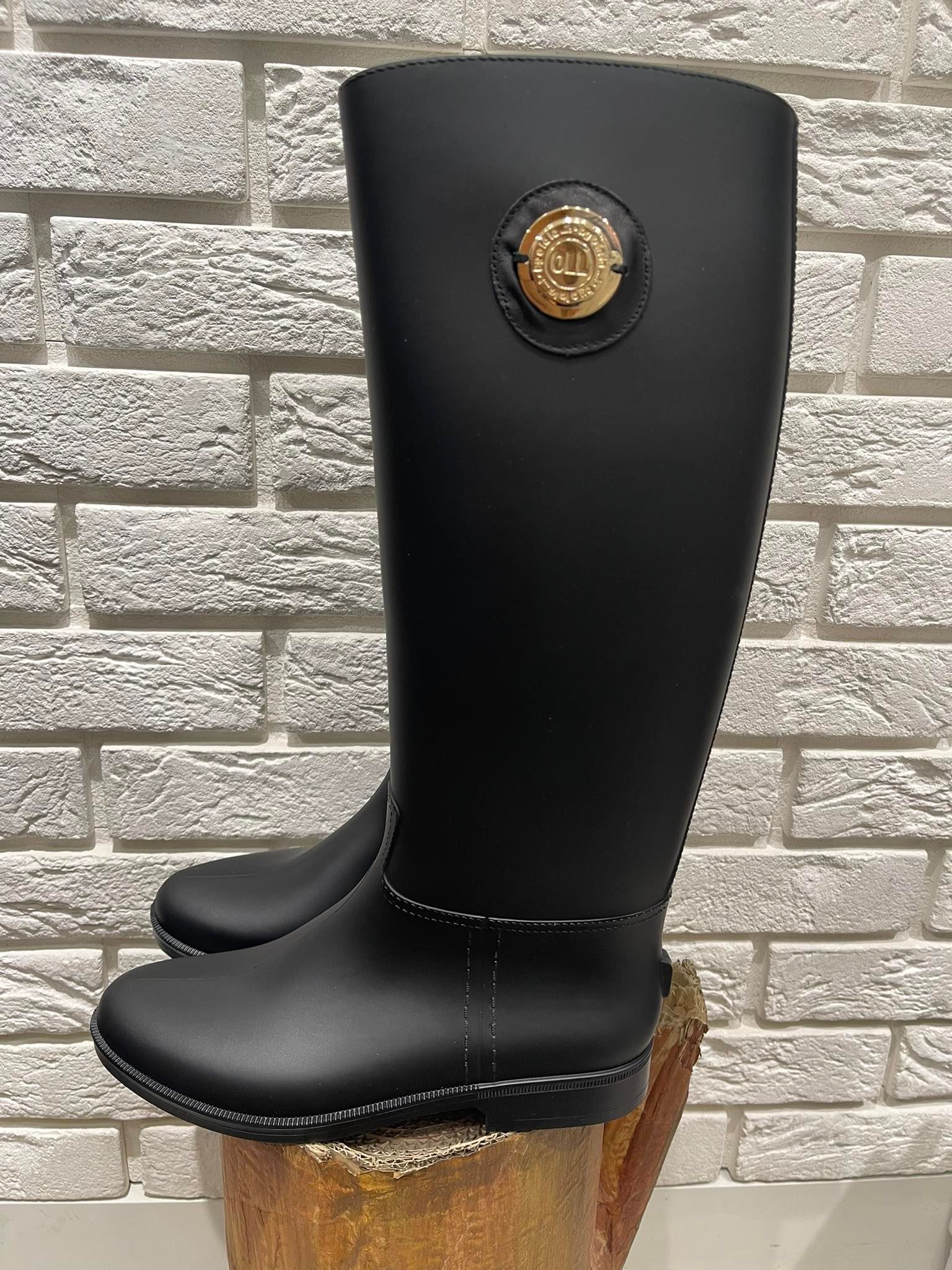 BY O LA LA...! BUTY KALOSZE KÓŁKO CZARNE/ZŁOTO