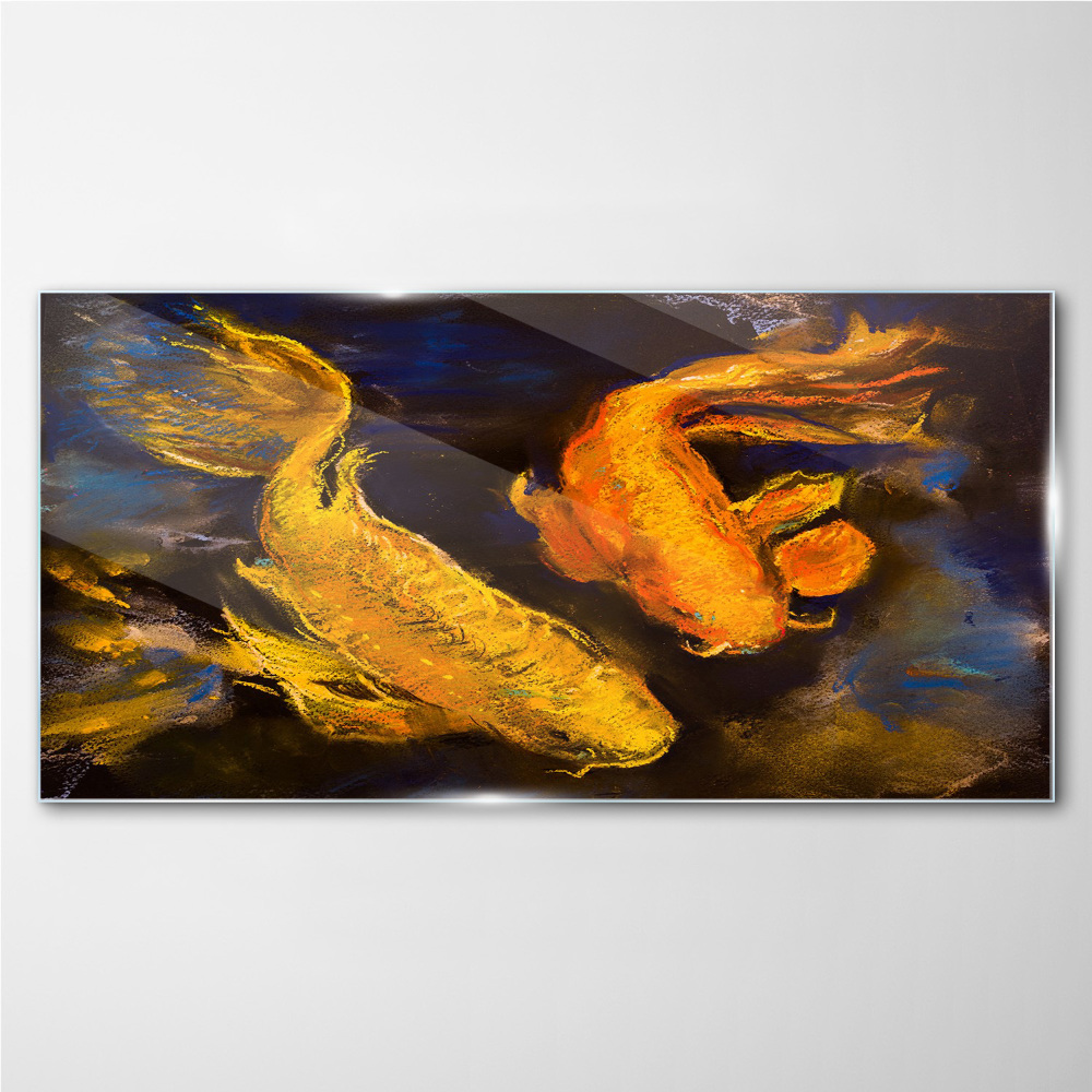 Obraz na Szkle Złote ryby w wodnym tańcu 100x50 cm