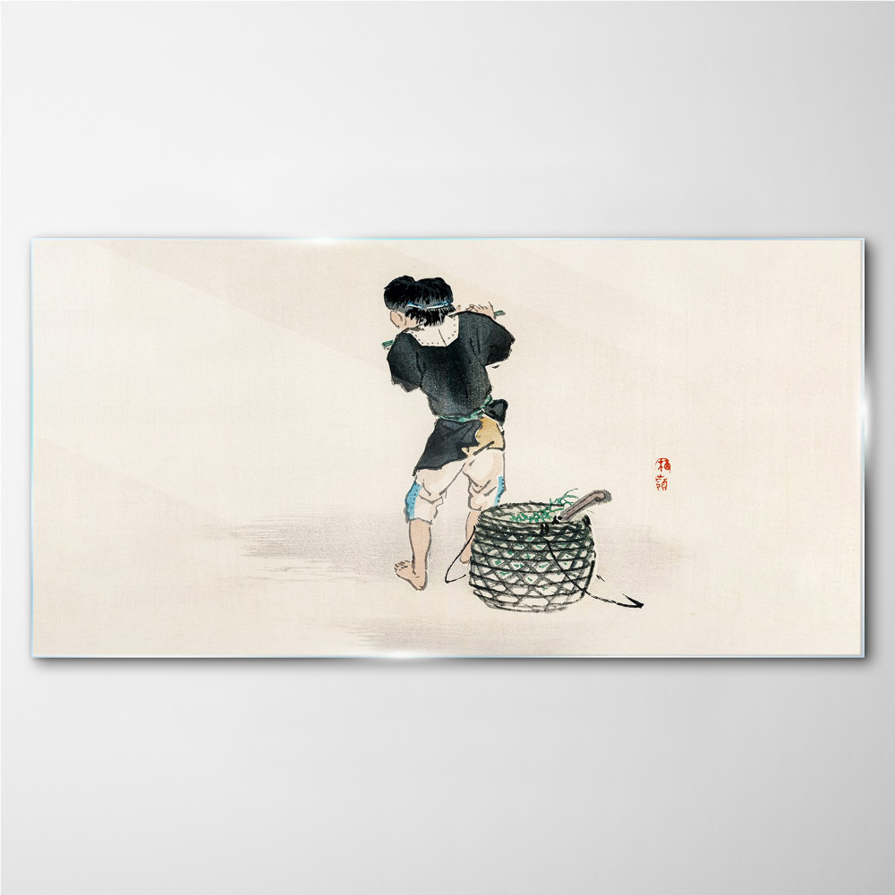 Obraz Szklany Chłopiec z koszem 100x50 cm