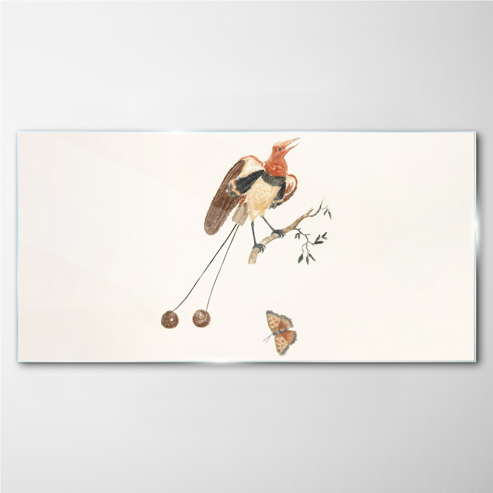 Obraz na Szkle Ptak na gałęzi z owocami 100x50 cm