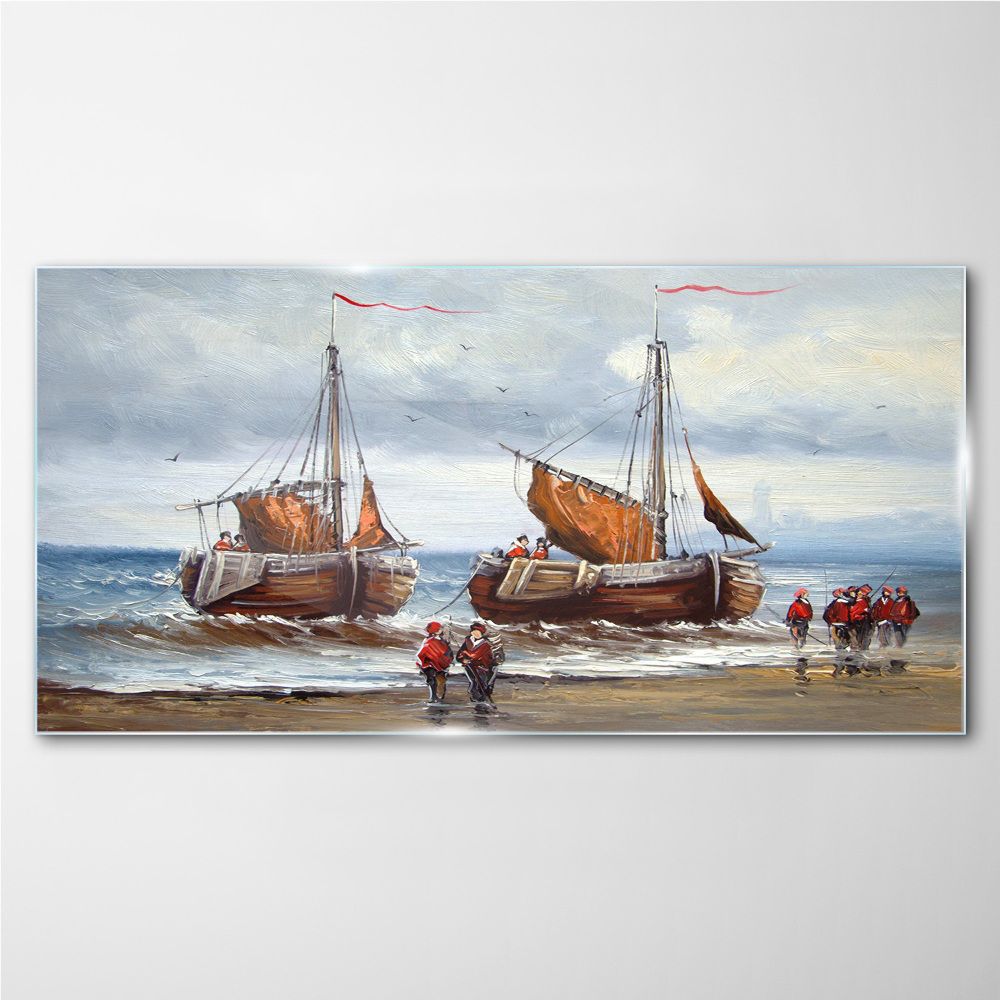 Obraz na Szkle Żagle na horyzoncie 100x50 cm