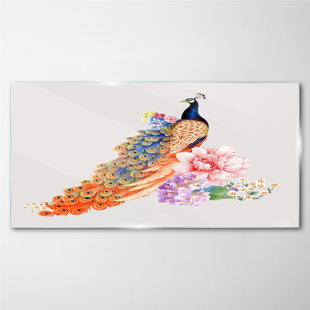 Obraz na Szkle Pawie wśród kwiatów 100x50 cm