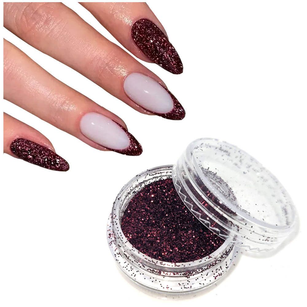 Pyłek do zdobienia paznokci bordowy brokat