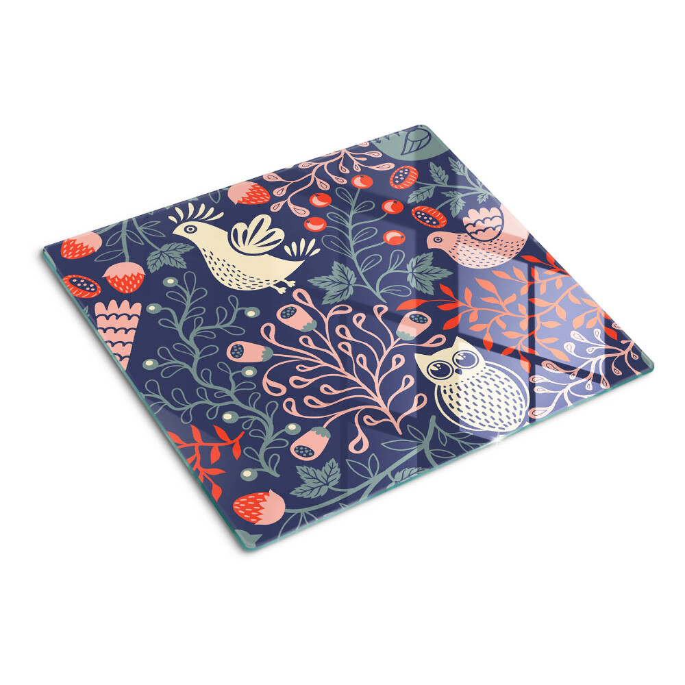 Tabla de cortar de cristal Pájaros y frutas en estilo folklórico 60x52 cm