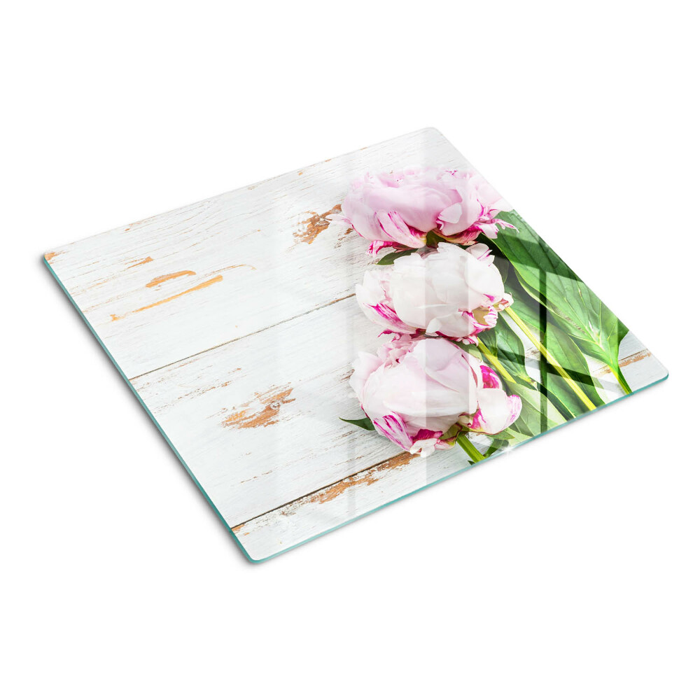 Tabla para cortar Flores de peonía sobre un fondo de madera 60x52 cm