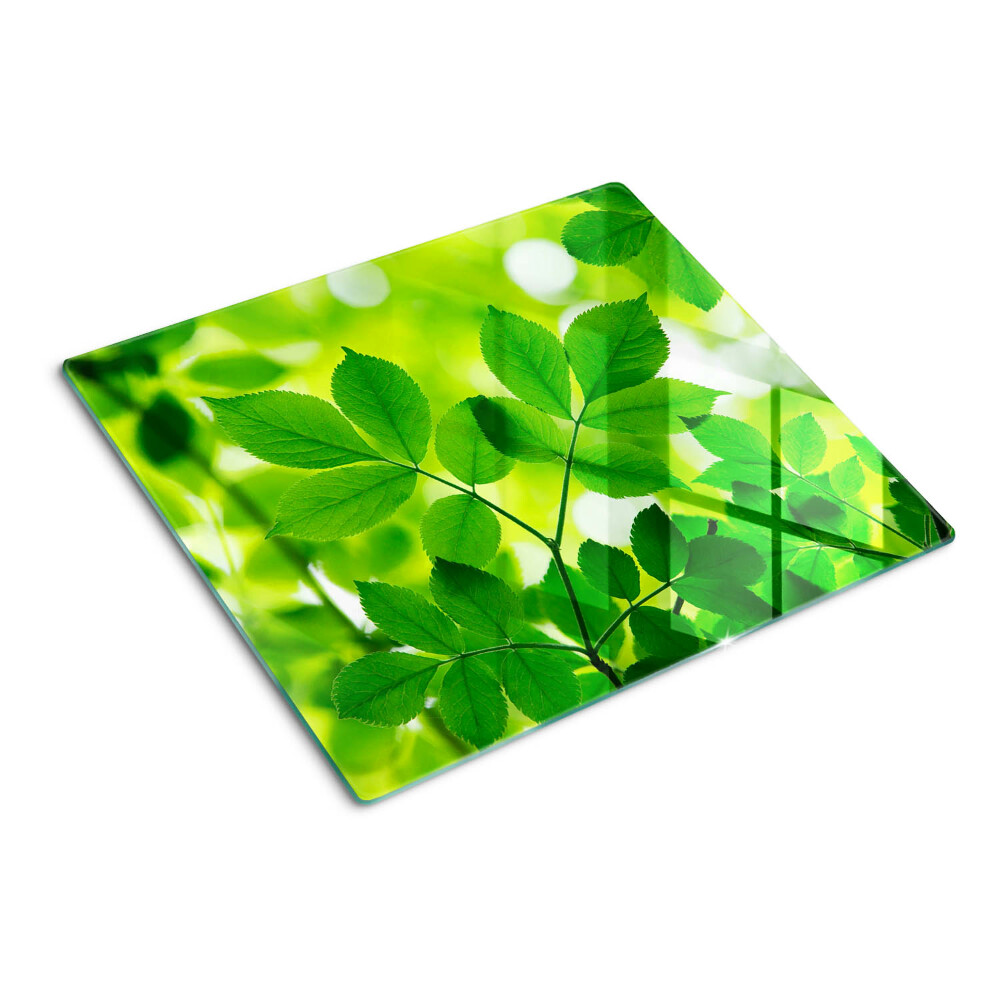 Tabla de cortar de cristal Hojas sobre un fondo verde 60x52 cm