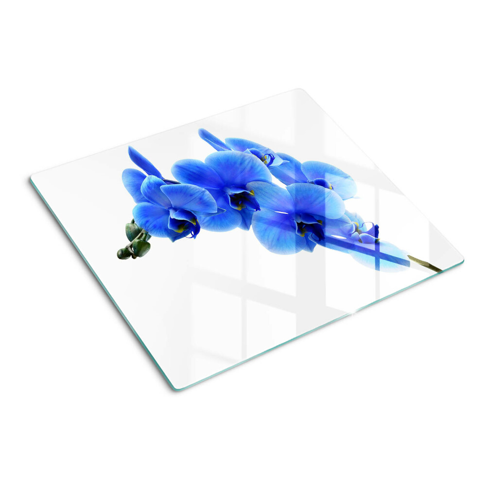Tabla de cortar de cristal Patrón floral sobre fondo azul. 60x52 cm