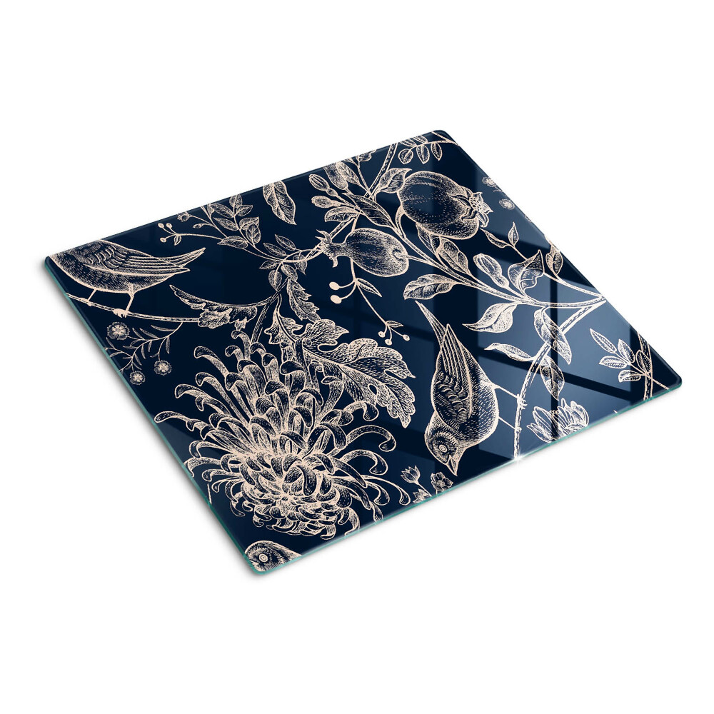 Tabla de cortar de cristal Flores y pájaros sobre un fondo oscuro. 60x52 cm