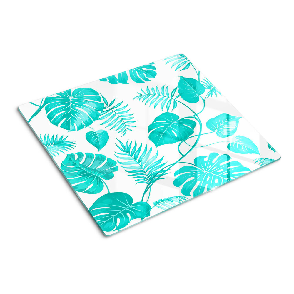 Tabla de cortar de cristal Hojas tropicales en tonos verdes. 60x52 cm