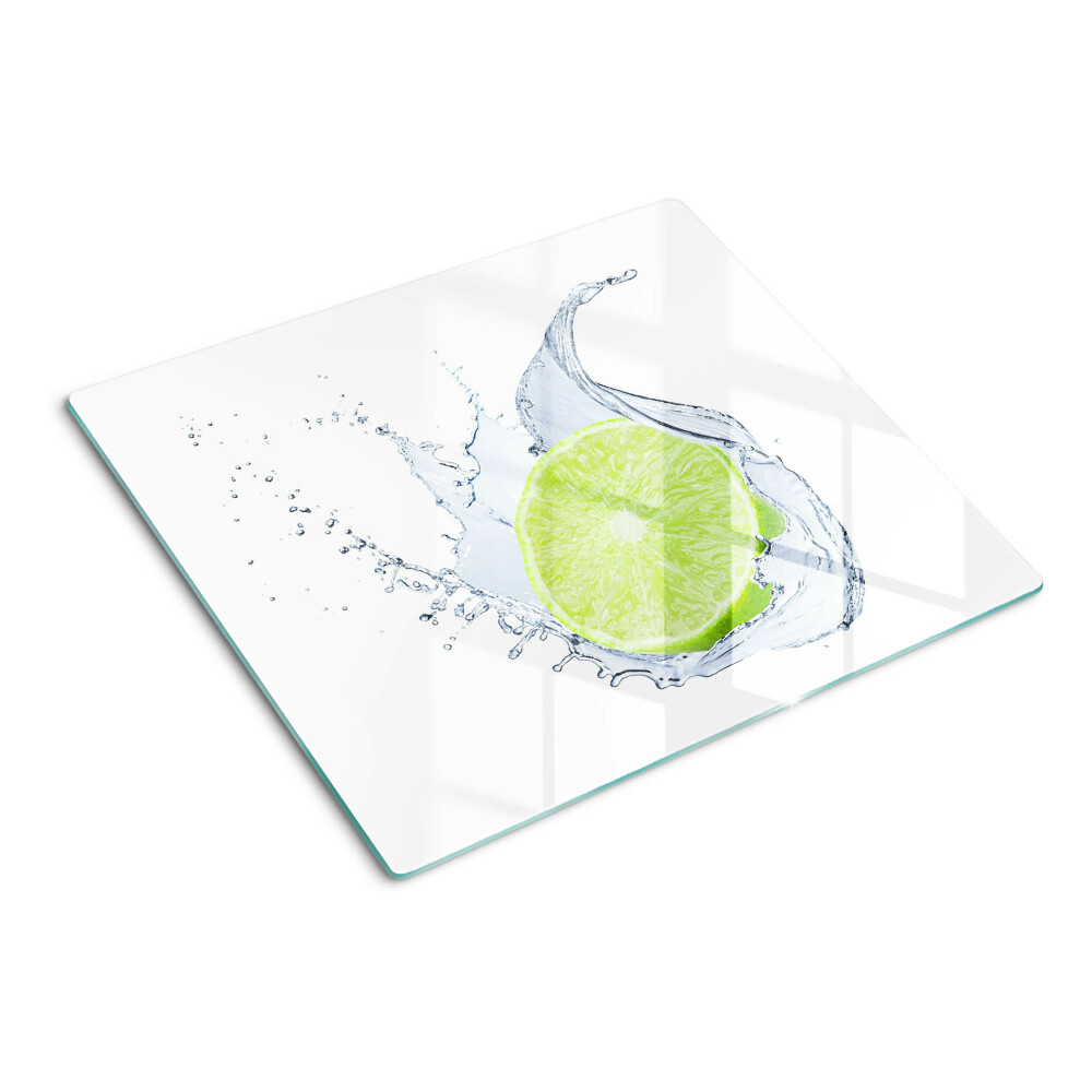 Tabla de cortar de cristal Limones y uvas sobre un fondo verde. 60x52 cm