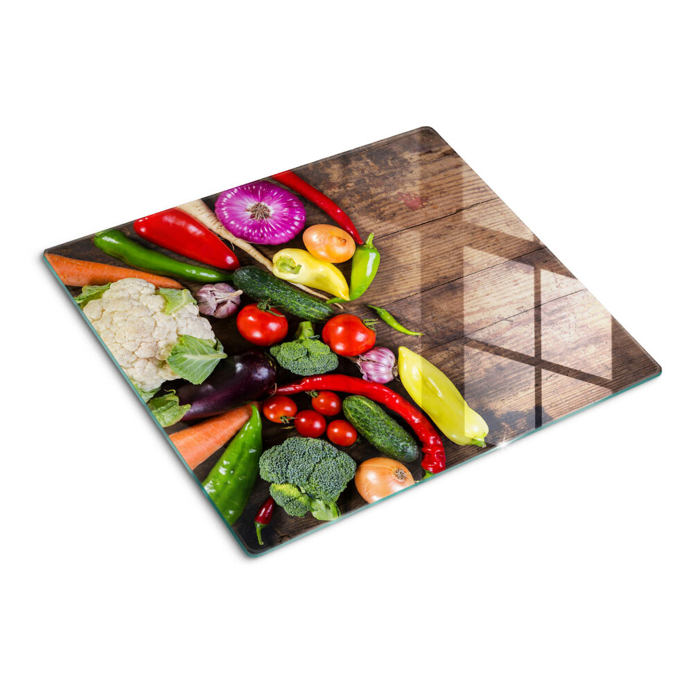 Tabla para cortar Verduras sobre un fondo de madera 60x52 cm