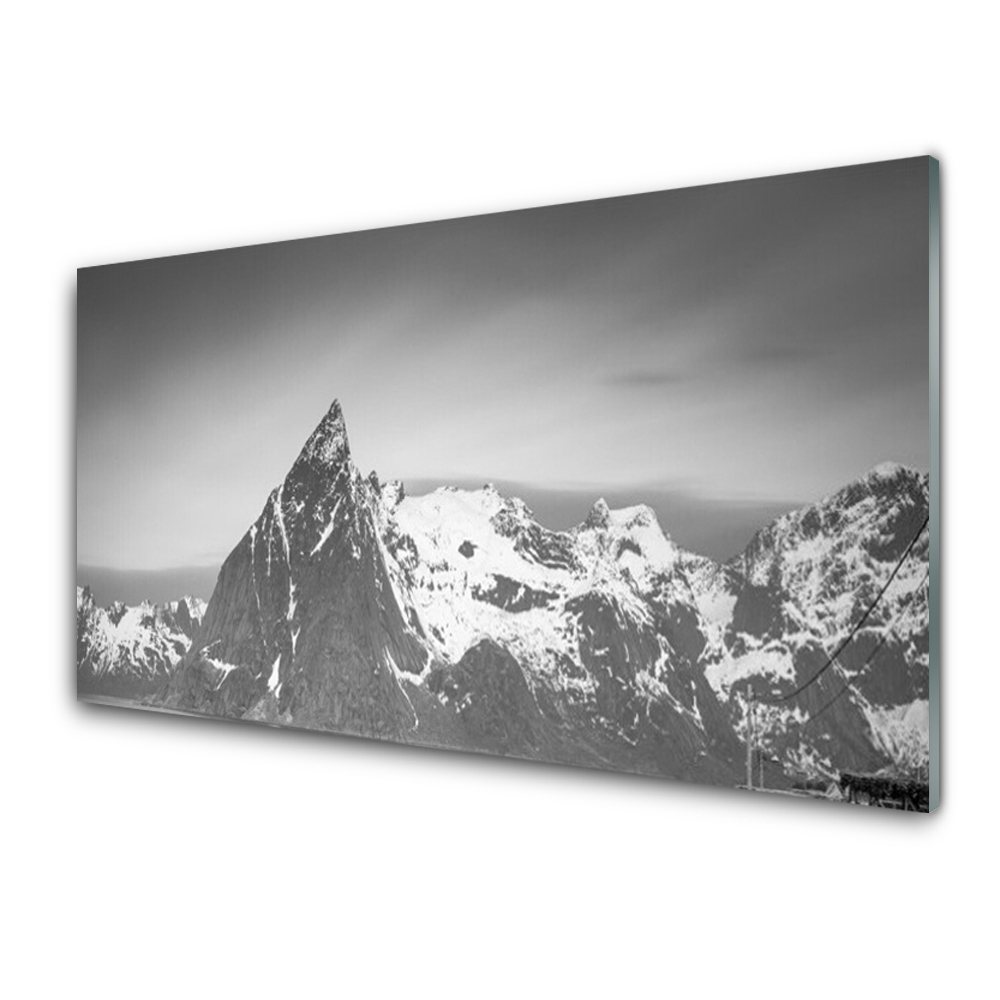 Glass Print Mountains landscape grey white 40x20 in (100x50 cm) 2 fittings