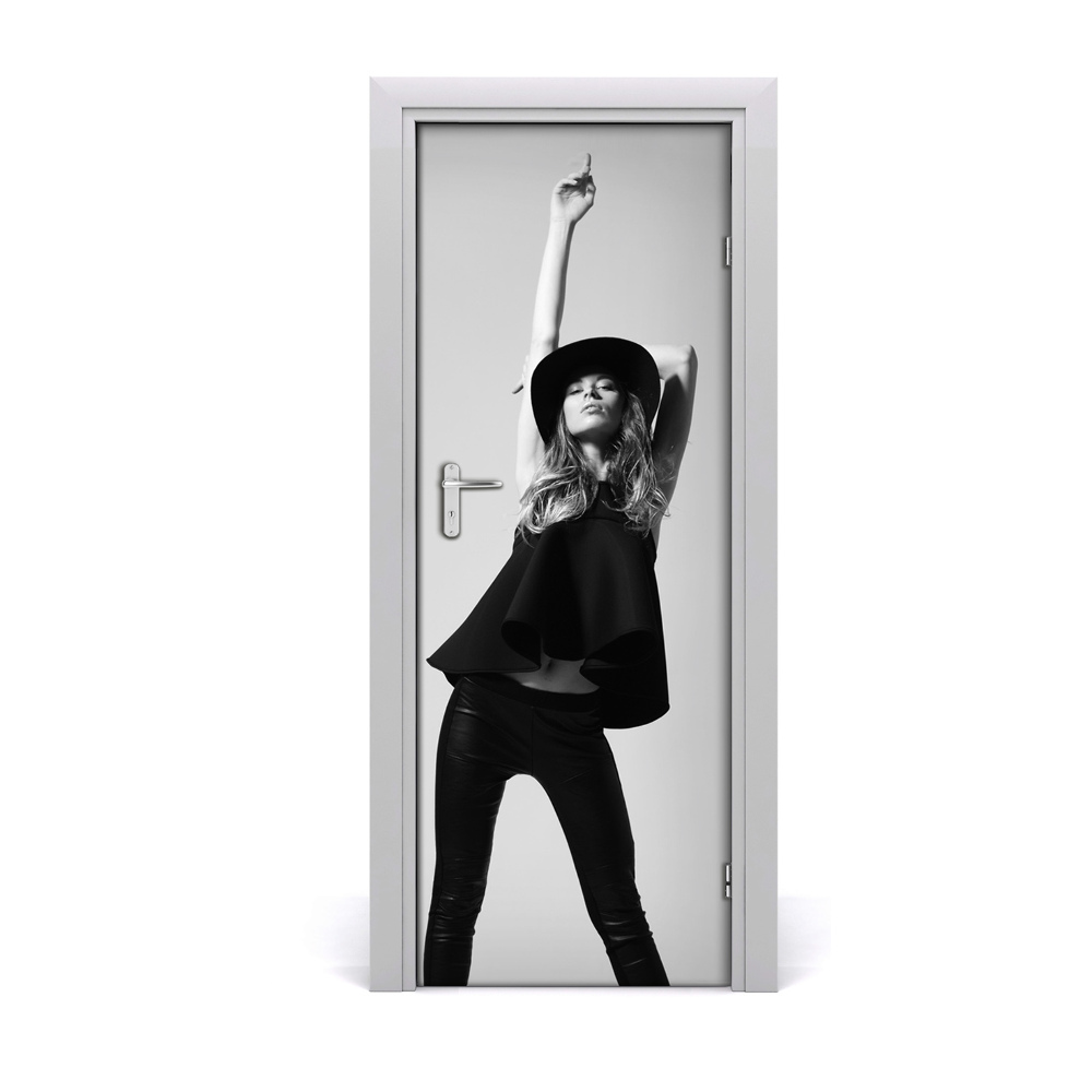 Door wallpaper Woman in black 29x81 in (75x205 cm)