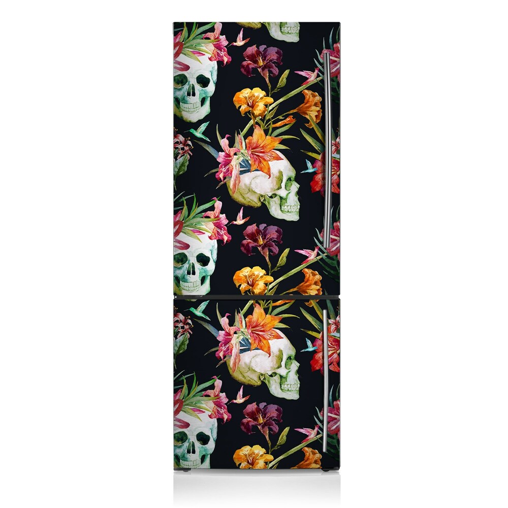 Mágneses hűtőmatrica Koponyák és virágok 60x180 cm