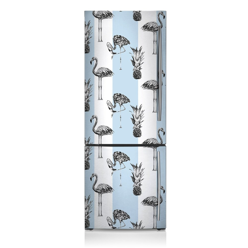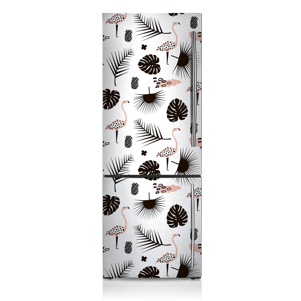 Hűtőszekrény mágneses matrica Levelek és flamingók 60x180 cm