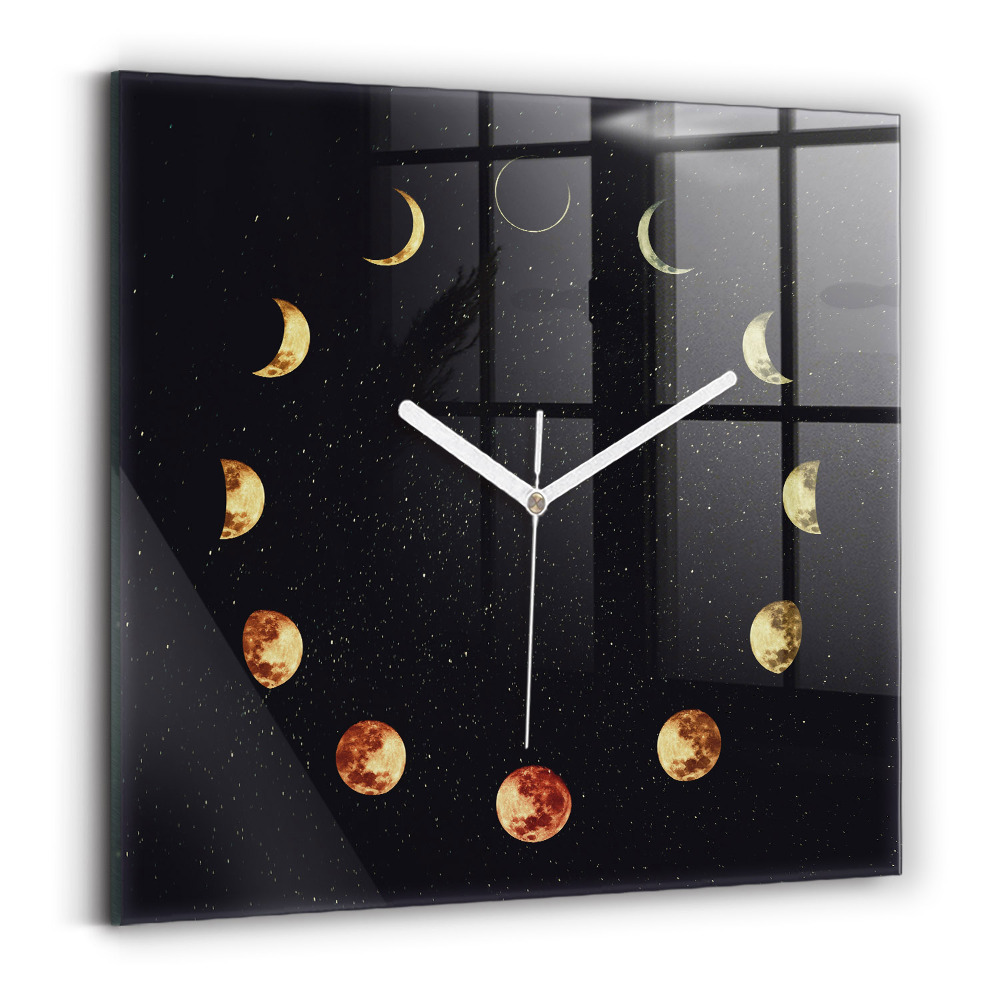 Ceas din sticlă pătrat Měsíční fáze 30x30 cm Alb