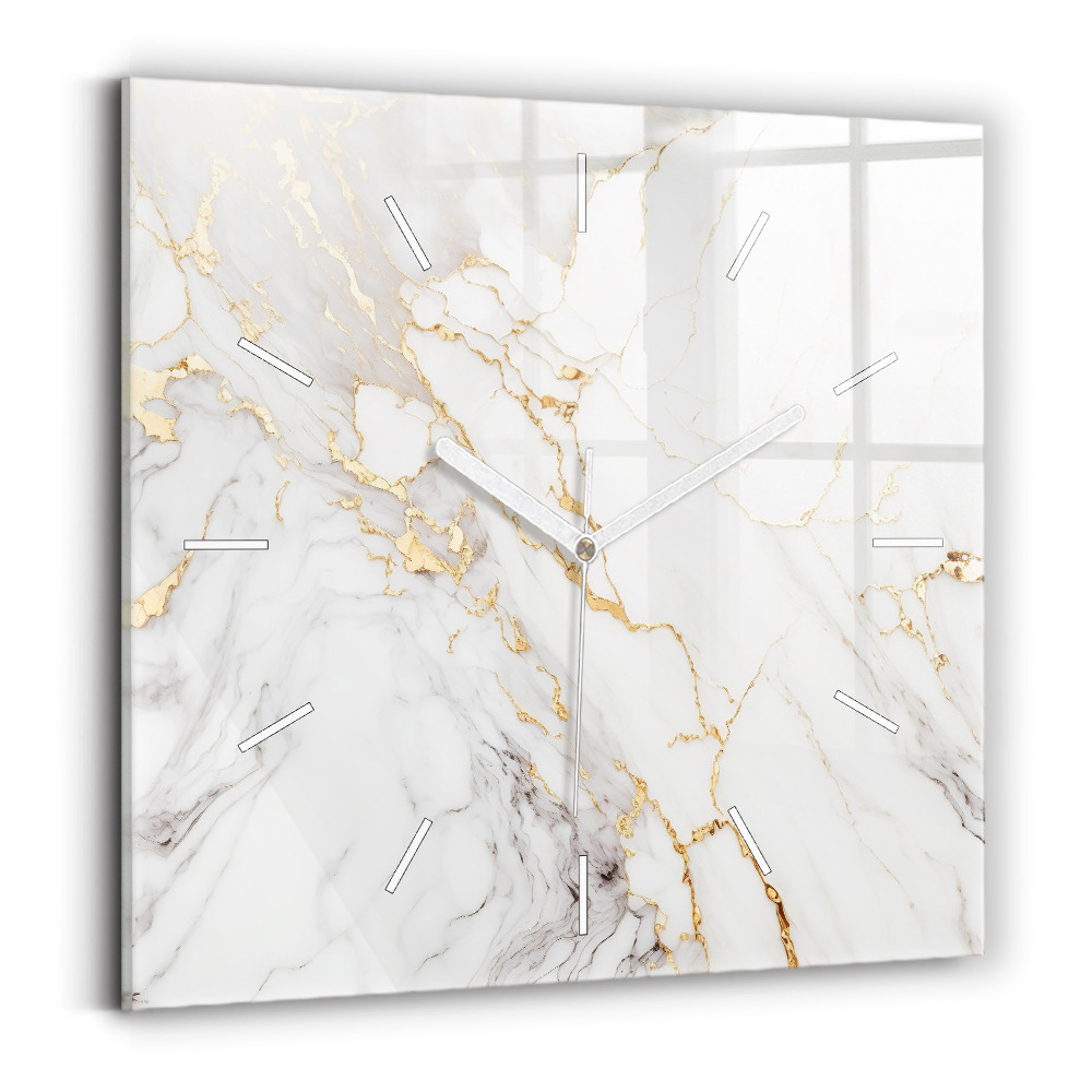 Ceas pătrat de perete din sticlă Marmură decorativă Linii Alb