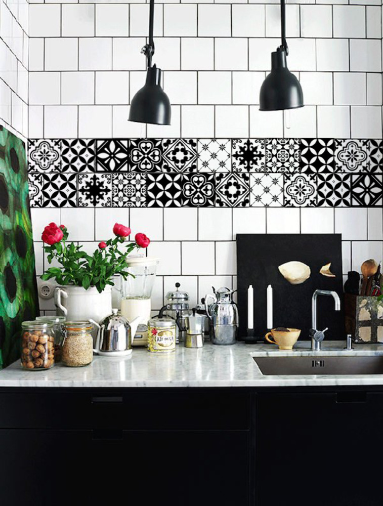 Autocolante gresie Autocolante gresie Maroc alb-negru
