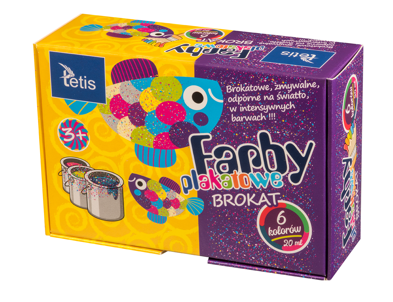 Farby plakatowe Tetis brokat 6 kolorów 20ml