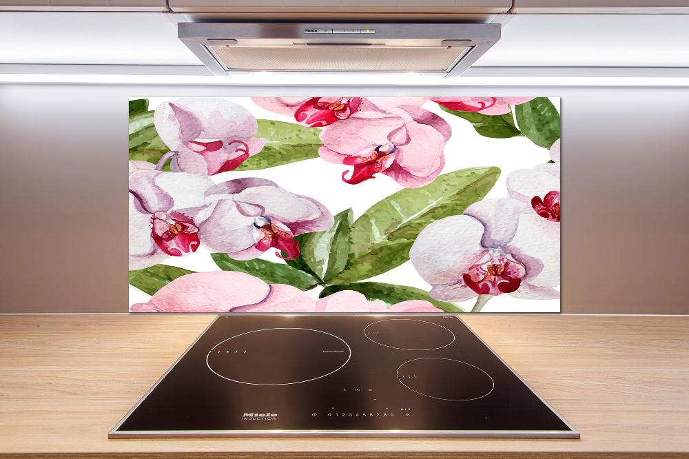 Konyhai hátfalpanel Rózsaszín orchideák 100x50 cm