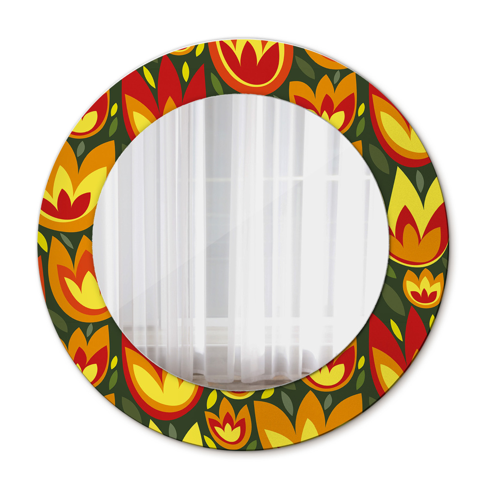 Kulaté dekorační zrcadlo na zeď Retro tulipány