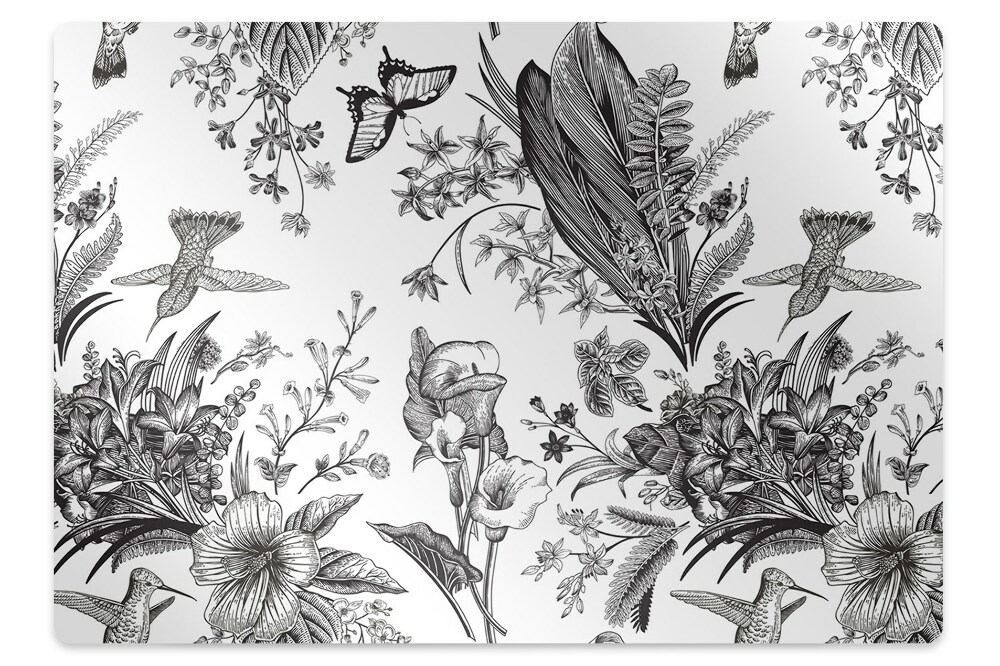 Tapis pour chaise de bureau Jardin noir et blanc fi 100 cm -